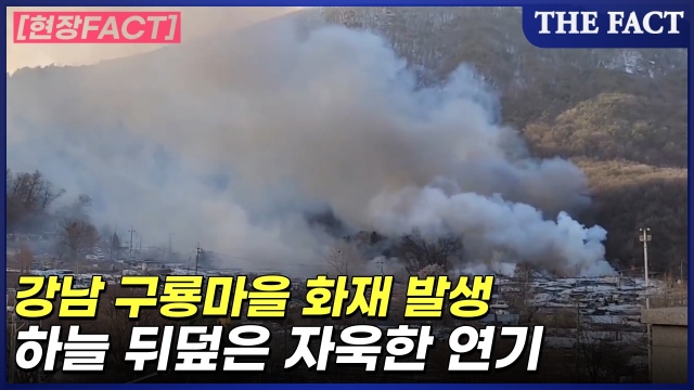 [더팩트|개포동=이선화·이상빈 기자] 20일 오전 6시 27분쯤 서울 강남구 개포동 구룡마을 4구역에 큰 화재가 발생해 소방당국이 진화에 나섰다.