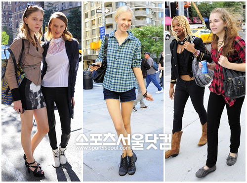 풋풋한 뉴욕의 10대들은 패션도 수수했다. 킬힐 처럼 높은 구두보다 편안함이 우선이었다. 박시한 체크 무늬 남방에 데님 숏 팬츠나 블랙 레깅스로 코디했다. 메이크업도 과하지 않았다. 오히려 쌩얼에 가까웠다.