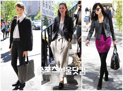 멋스러운 20대들은 개성있는 패션을 즐겨입었다. 쌀쌀해진 가을 날씨에 앞 여밈이 독특한 퍼 자켓을 입거나 배기 팬츠 스타일의 스커트로 독특하면서도 눈길가는 스타일링을 완성했다. 특히 숏자켓은 많은 20대 뉴요커들에게 사랑받는 아이템이었다.