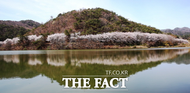 연분홍빛 벚꽃 길 품은 동정저수지[TF포토]
