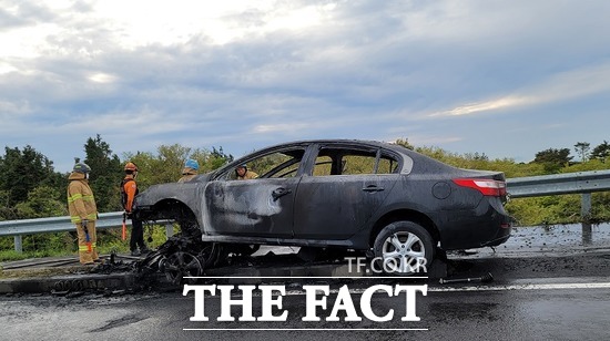 제주 평화로 차량 화재 발생... 졸음운전으로 인한 사고