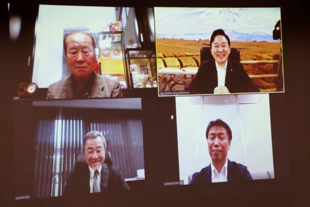 원희룡 지사는 27일 오후 5시 20분 제주도청 백록홀에서 열린 재일본도민회 회장단과의 화상 면담을 통해 코로나19로 힘든 도민회를 격려하고 애로사항을 청취하는 한편 재일제주인 대상 보은 사업 추진 현황 등을 설명했다.