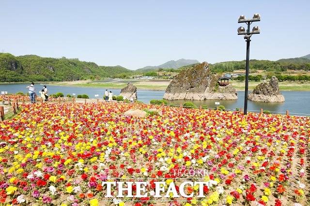 [더팩트 | 단양=장동열 기자] 충북을 대표하는 관광명소인 ‘단양 도담삼봉’에 백일홍과 석죽이 활짝 피었다.