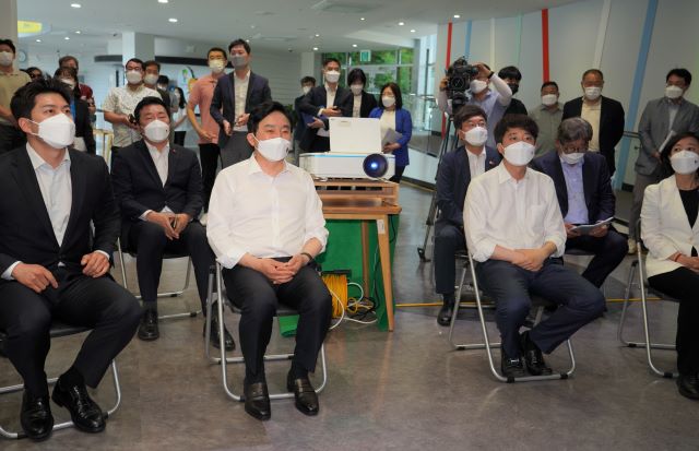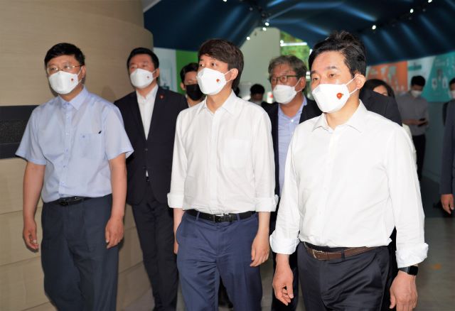 23일 제주시 구좌읍 신재생에너지홍보관 방문한 원희룡 도지사와 국민의힘 이준석 대표 [TF포토]