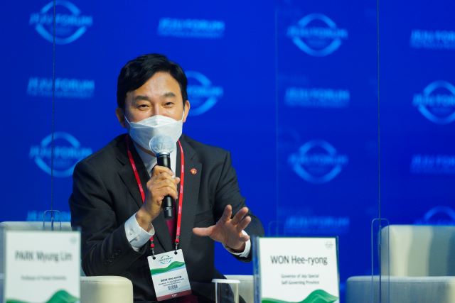 제주포럼서 베르너 페니히 전 교수·양조훈 이사장과 제주4·3 해결과제 등 논의[더팩트|제주=문형필 기자] 원희룡 제주특별자치도지사가 26일 "대한민국의 당당한 역사가 되고 세계적인 모범이 된 4·3을 이제는 평화와 하홥의 상징으로 대한민국의 미래를 열고 제주의 밝은 미래를 여는 동력으로 삼아야 한다"이라고 역설했다.