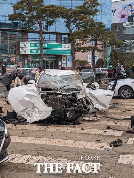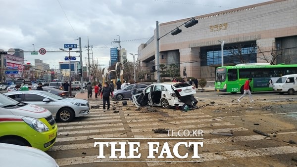 이 사고로 부상자 4명(중상 1명과 경상 3명)이 발생해 인근 병원으로 후송됐다. 또 사고가 나면서 신호기 등이 파손됐고, 사고 수습 과정에서 인근에 극심한 정체가 빚어졌다. tktf@tf.co.kr