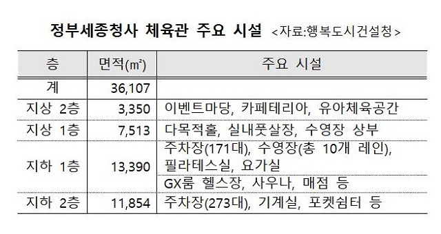 정래화 행복도시건설청 공공청사기획과장은 "이 체육관은 정부세종청사 근무 공무원들을 위한 직장 체육시설로 건립됐지만 일반 시민들도 이용할 수 있다"고 말했다.