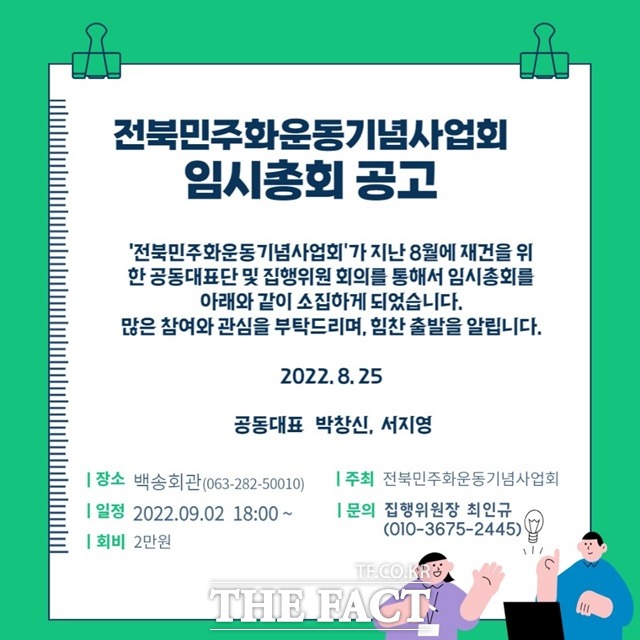 전북민주화운동기념사업회는 8월 재건을 위한 공동대표단과 집행위원 회의를 통해 임시총회를 내달 2일 소집한다.