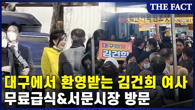 [더팩트ㅣ대구=박성원·김채은 기자] 윤석열 대통령 부인 김건희 여사가 11일 대구를 방문해 달서구 성서종합사회복지관에서 무료급식 자원봉사를 한 후 서문시장을 방문해 상인들의 열렬한 환영을 받았다.
