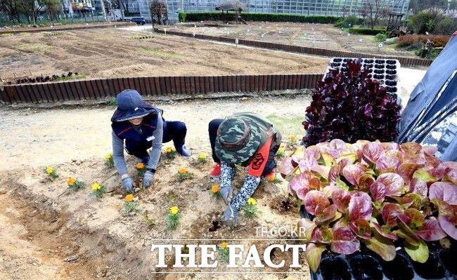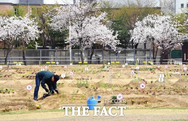 [더팩트|시흥=김동선 기자] 경기 시흥시 도시농업공원의 시민행복텃밭이 개장했다. 정성스레 다양한 채소의 모종을 심고 물을 뿌리며 흙을 다듬는 도시농부들로 분주한 텃밭에는 새봄이 가득하고, 생명력을 느끼는 도시농부들 표정이 해사하다.