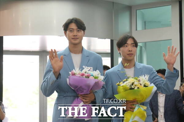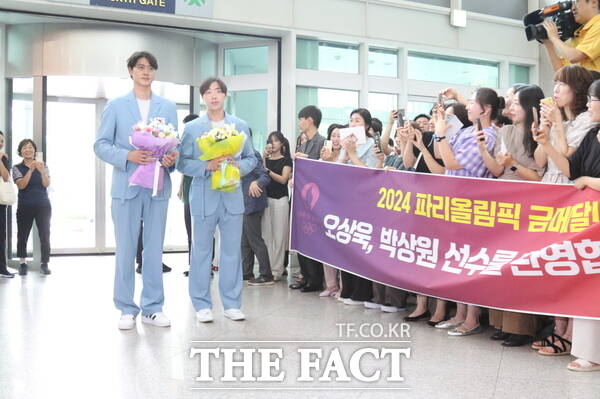 [더팩트ㅣ대전=정예준 기자] 2024 파리올림픽 금메달리스트인 오상욱·박상원(대전시청)이 8일 환호속에 고향으로 돌아왔다. 이들은 향후 대전의 명물 성심당을 뛰어넘는 것이 목표라고 밝혔다