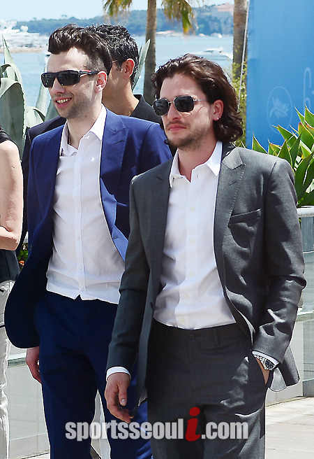 [칸(프랑스)=이새롬 기자] 제 67회 칸영화제 비경쟁부문 진출작 '드래곤 길들이기2'의 배우 제이 바루첼(왼쪽)과 키트 해링턴이 16일 오후 (현지시각) 프랑스 칸 팔레 데 페스티벌 내 기자회견장에 들어서고 있다.