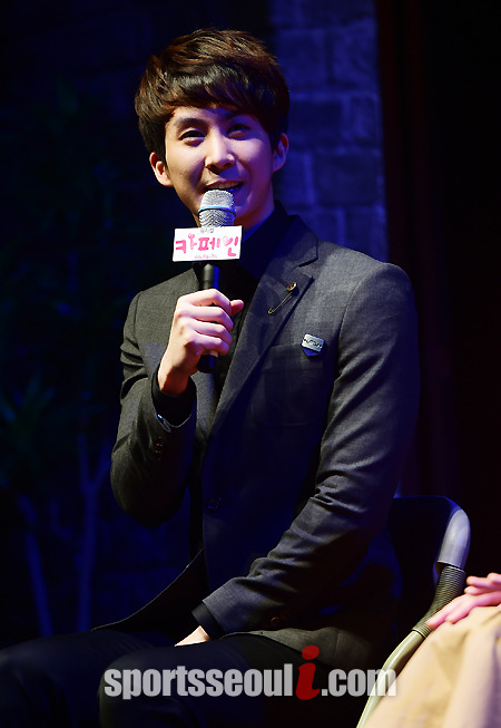 [ 대치동=배정한 기자] 뮤지컬 '카페인' 프레스콜이 26일 오후 서울 대치동 KT&G 상상아트홀에서 열린 가운데 배우 김기범이 취재진의 질문에 답하고 있다.