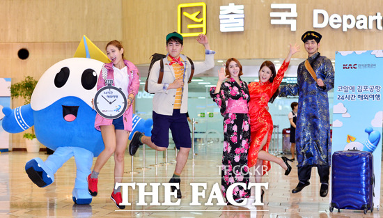 [더팩트 | 김포국제공항=남윤호 기자]김포국제공항을 운영하는 한국공항공사가 5일 오전 김포국제공항 국제선청사에서 '코앞에 김포공항, 24 시간 해외여행' 이벤트의 시작을 알리는 사진행사를 진행하고 있다.