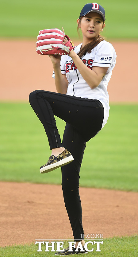 [더팩트|잠실야구장=최용민 기자]29일 저녁 서울 잠실야구장에서 열린 '2014 한국야쿠르트 세븐 프로야구' 삼성 라이온즈와 두산 베어스의 경기에 앞서 홈팀 두산의 시구자로 초청돼 시구를 하고 있다. 이태임은 지난해 한화-NC의 경기에서 한화의 시구자로 나서 13연패에 빠진 한화에 첫 승을 안겨준 승리의 여신으로 이름을 날린 바 있다.