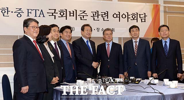 [더팩트│국회=임영무 기자]김무성 새누리당 대표와 문재인 새정치민주연합 대표가 한·중 자유무역협정(FTA) 비준동의안을 오후 본회의에서 표결 처리하기로 최종 합의했다.