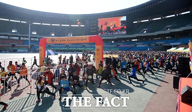 [더팩트ㅣ이효균 기자] 특종에 강한 신개념 대중종합지 '더팩트'가 고구려의 역사적 의미를 되새기기 위해 오는 21일 오전 10시 서울 송파구 잠실종합운동장 주경기장에서 'THE FACT와 함께하는 아! 고구려 역사지키기 마라톤대회'를 개최해 참가자들이 준비운동을 하고 있다.