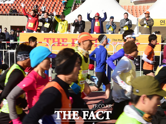 [더팩트 │배정한 기자] 특종에 강한 신개념 대중종합지 '더팩트'가 고구려의 역사적 의미를 되새기기 위해 오는 21일 오전 10시 서울 송파구 잠실종합운동장 주경기장에서 'THE FACT와 함께하는 아! 고구려 역사지키기 마라톤대회'를 개최했다. 참가자들이 결승점을 향해 출발을 하고 있다.