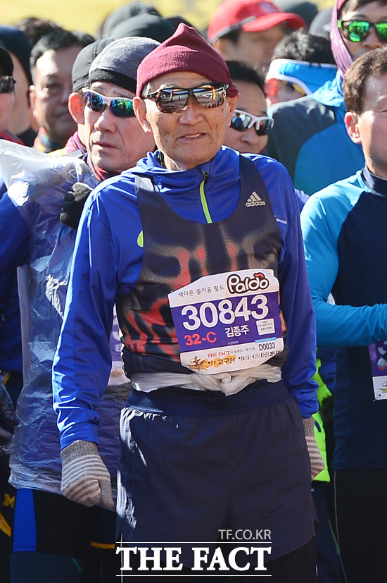 [더팩트 │배정한 기자] 특종에 강한 신개념 대중종합지 '더팩트'가 고구려의 역사적 의미를 되새기기 위해 오는 21일 오전 10시 서울 송파구 잠실종합운동장 주경기장에서 'THE FACT와 함께하는 아! 고구려 역사지키기 마라톤대회'를 개최했다. 이날 최고령 참가자인 김종주 씨가 출발 준비를 하고 있다.