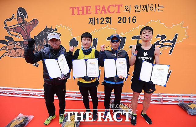 [더팩트 | 이덕인 기자] 특종에 강한 신개념 대중종합지 '더팩트'가 고구려의 역사적 의미를 되새기기 위해 오는 21일 오전 10시 서울 송파구 잠실종합운동장 주경기장에서 'THE FACT와 함께하는 아! 고구려 역사지키기 마라톤대회'를 개최한 가운데 32Km 코스 남자 부분 수상자가 포즈를 취하고 있다.