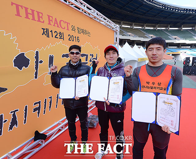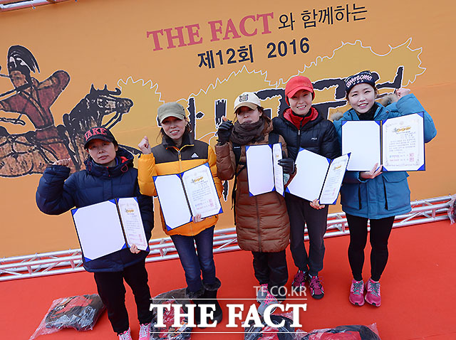 [더팩트 | 이덕인 기자] 특종에 강한 신개념 대중종합지 '더팩트'가 고구려의 역사적 의미를 되새기기 위해 오는 21일 오전 10시 서울 송파구 잠실종합운동장 주경기장에서 'THE FACT와 함께하는 아! 고구려 역사지키기 마라톤대회'를 개최한 가운데 풀코스 부분 1위 남녀 수상자가 포즈를 취하고 있다.