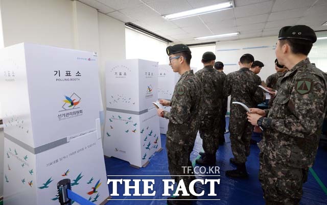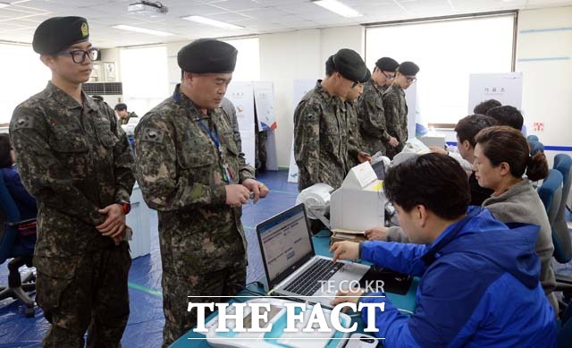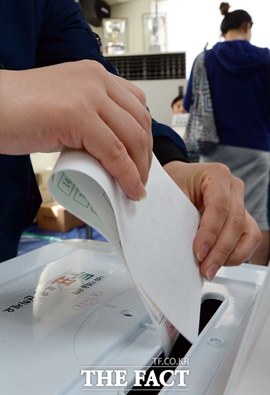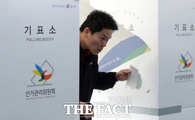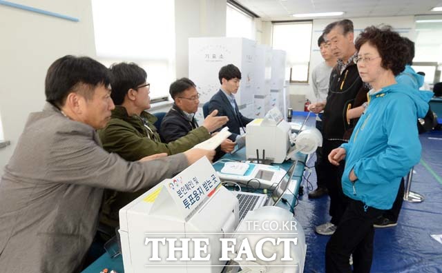 [더팩트│안양=임영무 기자]제20대 총선 사전투표가 시작된 8일 오전 경기 안양시 박달2동 주민센터에 마련된 사전투표소를 찾은 시민들이 투표를 하고 있다.
