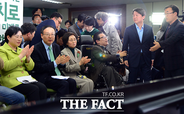 [더팩트ㅣ이새롬 기자] 안철수 국민의당 상임 공동대표가 제20대 국회의원선거 투표가 마감된 13일 오후 서울 마포 국민의당 당사에 들어서고 있다.