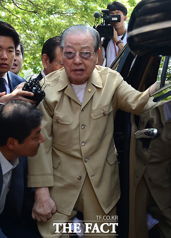 [더팩트ㅣ이새롬 기자] 김종필 전 국무총리가 28일 오전 서울 신당동 자택에서 반기문 유엔 사무총장과의 면담을 마친 뒤, 자택을 나서며 취재진의 질문을 받고 있다. 김 전 총리는 '반 총장의 대선 출마 가능성'에 대한 질문에 '시끄럽다'며 일축했다.