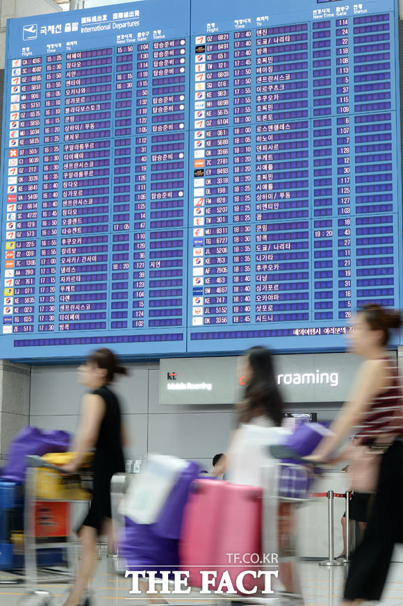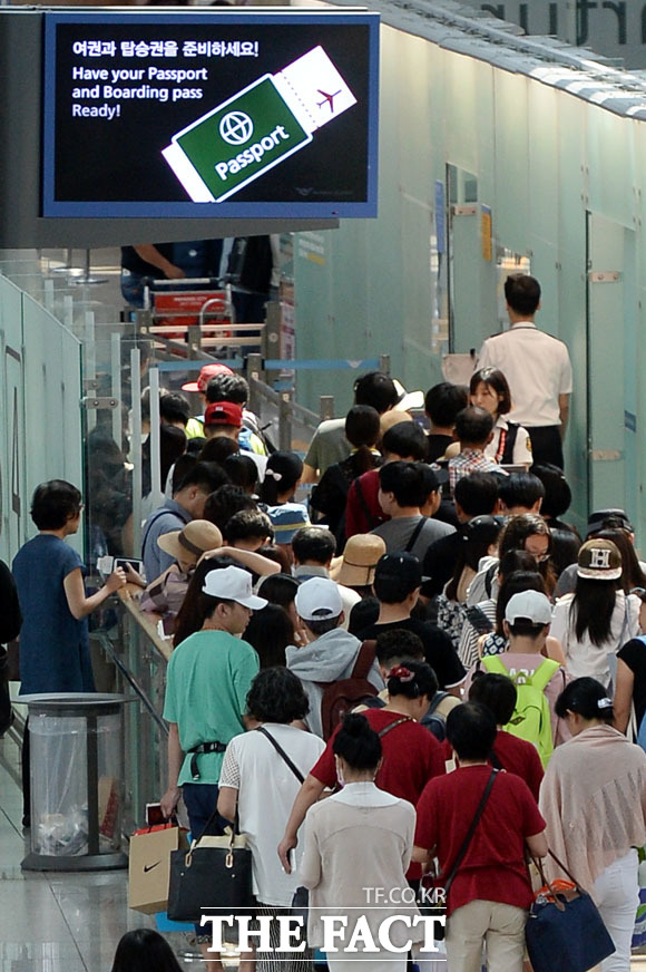 [더팩트 | 인천국제공항=남용희 인턴기자] 본격적인 여름 휴가철을 맞은 25일 오후 인천국제공항 출국장이 해외로 휴가를 떠나기 위한 인파로 크게 붐비고 있다. 인천국제공항공사는 이날 하루 18만 9천여명이 공항을 이용한 것으로 집계했다. 이는 지난 2월 14일 여행객 수 18만 1천명을 기록한 이후 최다 인파다.
