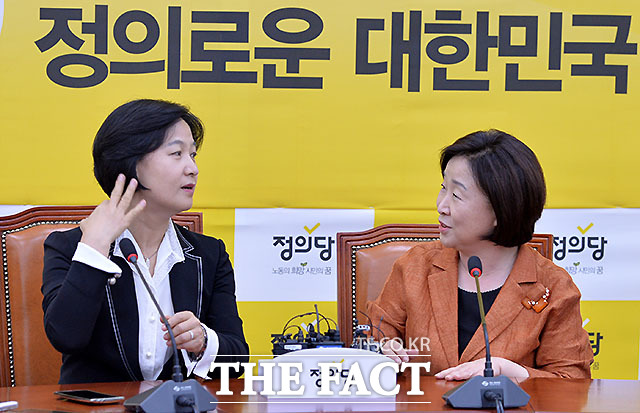 [더팩트ㅣ국회=문병희 기자] 추미애 더불어민주당 신임 당대표(왼쪽)가 29일 서울 여의도 국회에서 심상정 정의당 대표를 예방하며 손을 맞잡고 있다.