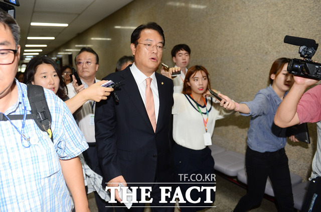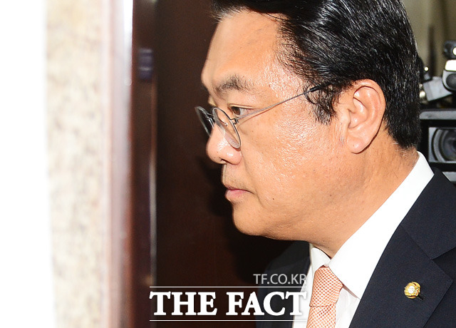 [더팩트ㅣ국회=배정한 기자] 새누리당 정진석 원내대표가 2일 서울 여의도 국회에서 의원총회를 마친 뒤 '정세균 국회의장이 부의장에게 사회권을 넘길 것'을 촉구하며 원내대표실로 이동하고 있다.