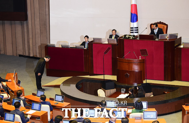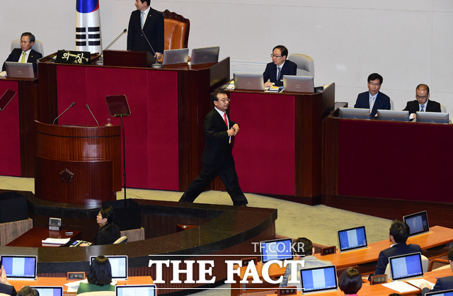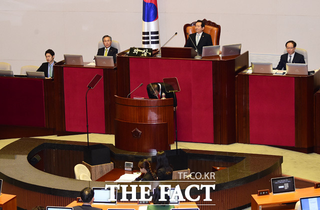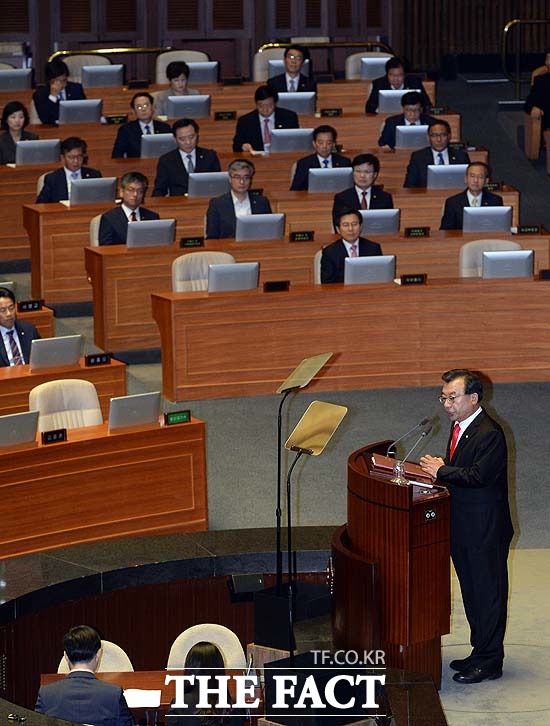 [더팩트ㅣ국회=임영무·배정한 기자] 새누리당 이정현 대표가 5일 서울 여의도 국회의사당에서 20대 국회 첫 정기국회 교섭단체 대표연설을 하고 있다.