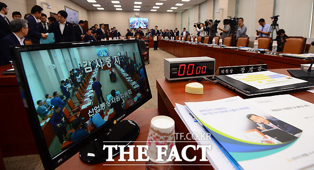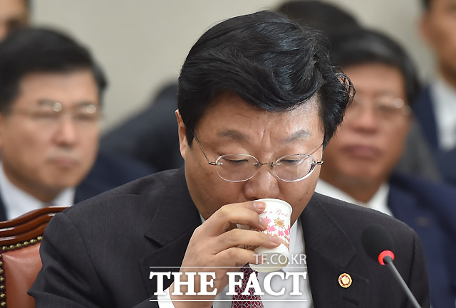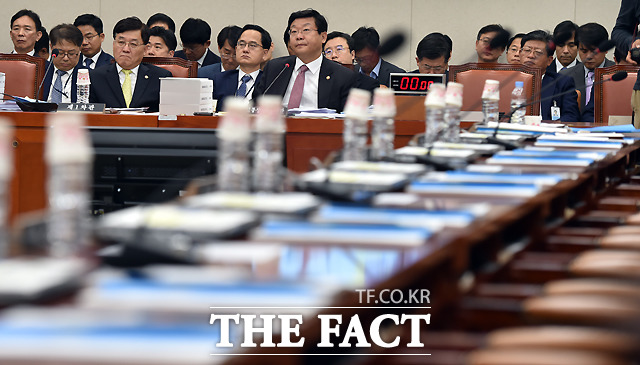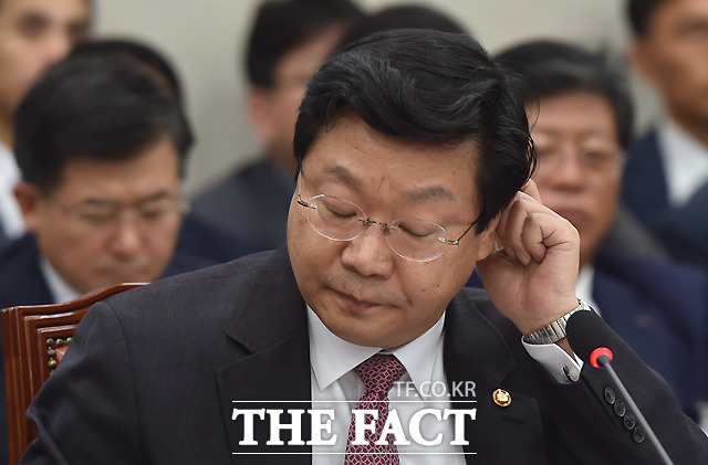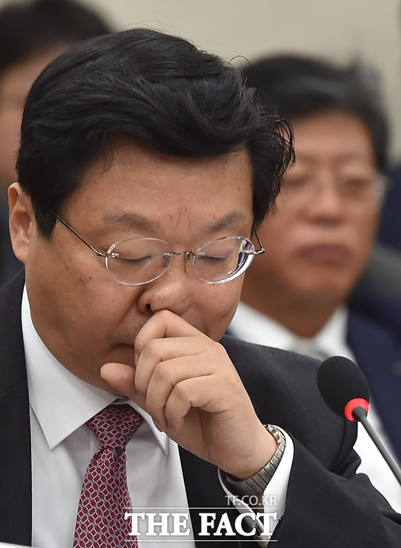 [더팩트ㅣ국회=이새롬 기자] 주형환 산업통상자원부 장관이 26일 오전 서울 여의도 국회에서 열린 산업통상자원부 국정감사에 참석해 고심하고 있다. 이날 감사는 김재수 농림축산식품부 장관 해임건의안 처리에 반발한 새누리당 의원들의 불참으로 중지됐다.