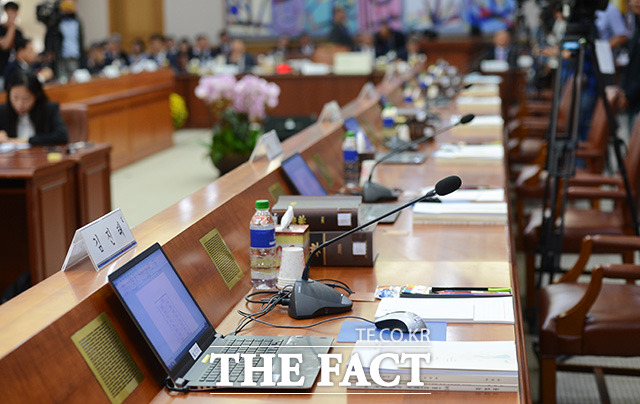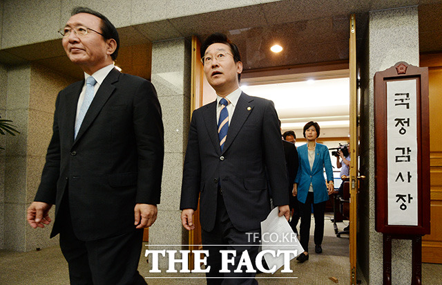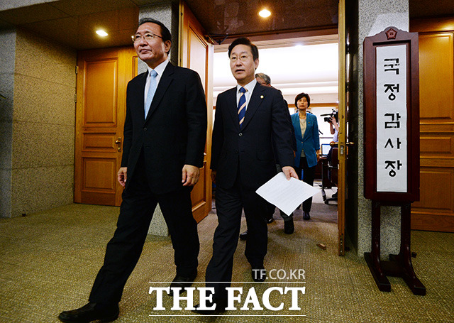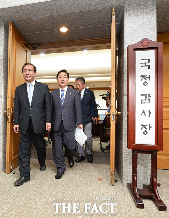 [TF포토] 새누리당 불참…'국정감사장 나오는 야당 의원들'