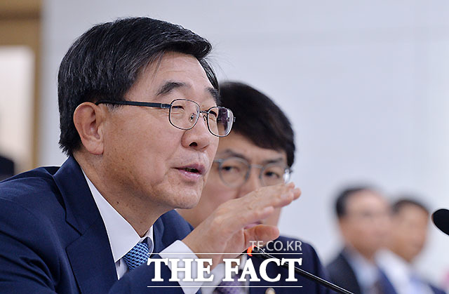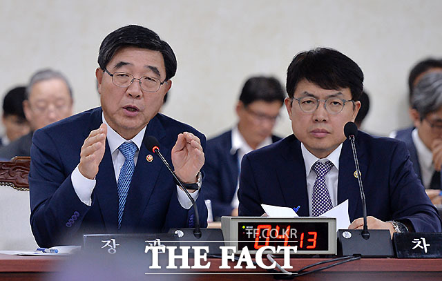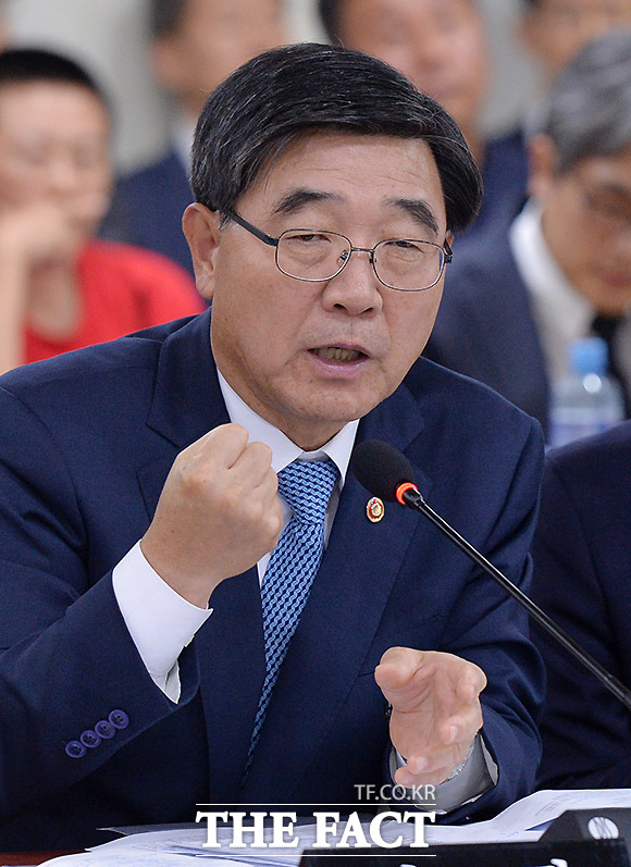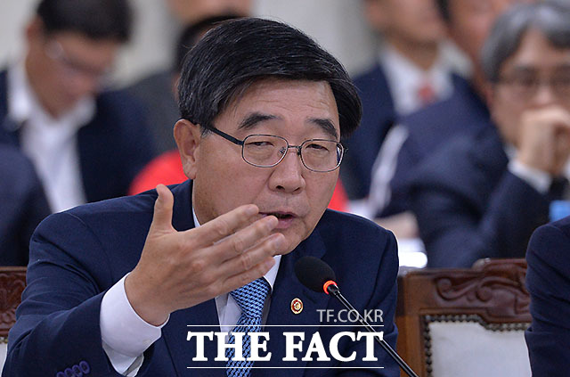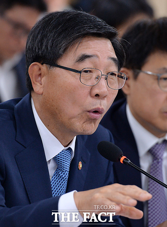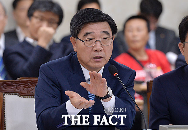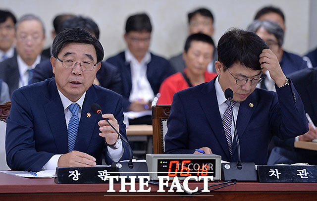 [더팩트ㅣ세종=문병희 기자] 이기권 고용노동부 장관이 6일 세종시 정부종합청사에서 열린 국회 환경노동위원회의 고용노동부에 대한 국정감사에 출석해 의원들의 질의에 답하고 있다.