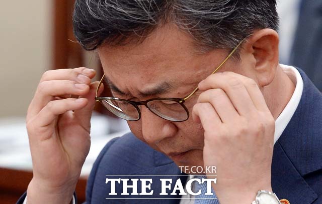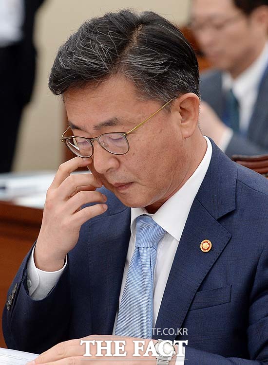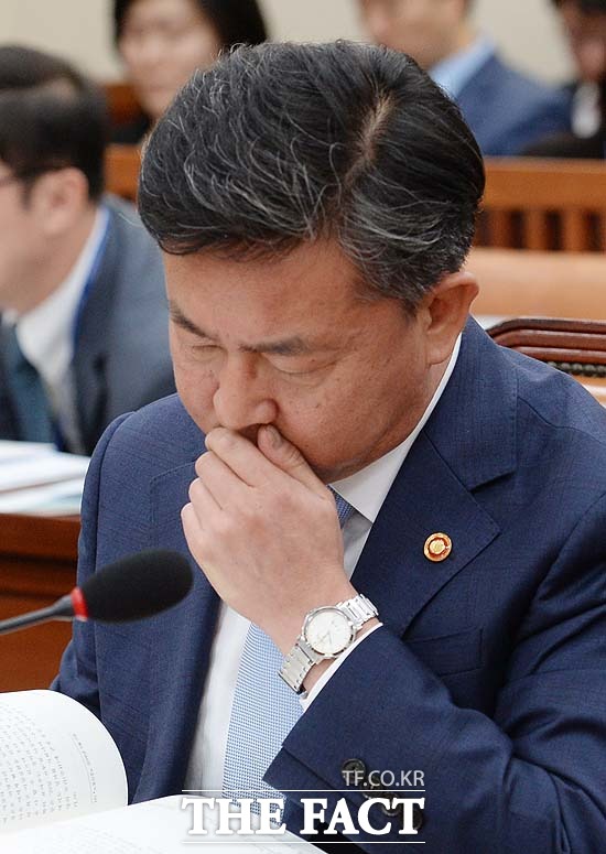 [더팩트│국회=임영무 기자]홍용표 통일부 장관이 27일 오전 서울 여의도 국회에서 열린 국회 외교통일위원회의 통일부에 대한 국정감사에 출석해 의원들의 질문에 곤혹스러운 표정을 짓고 있다.