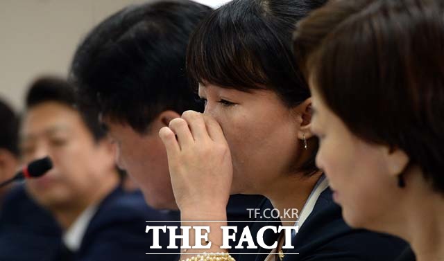 [더팩트│경찰청=임영무 기자]이재정 더불어민주당 의원이 29일 오전 서울 서대문구 통일로 경찰청에서 열린 국회안전행정위원회의 경찰청에 대한 국정감사에 참석해 이철성 경찰청장에게 고 백남기 농민의 사망과 관련해 발언을 하던중 눈물을 흘리고 있다.