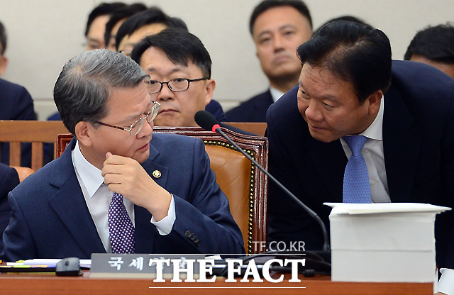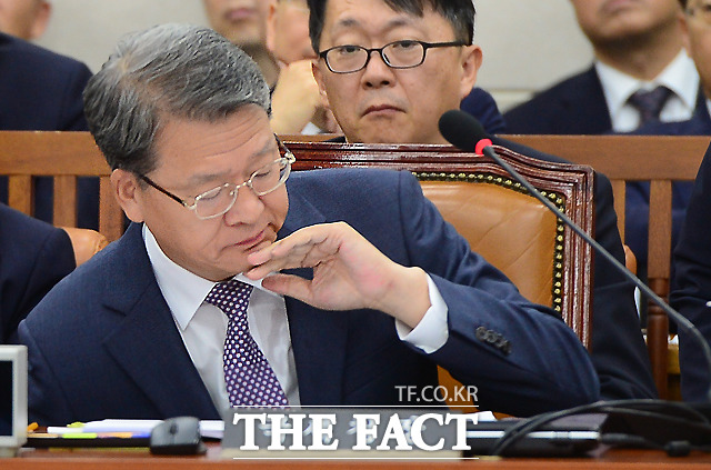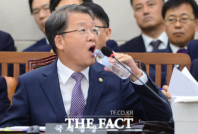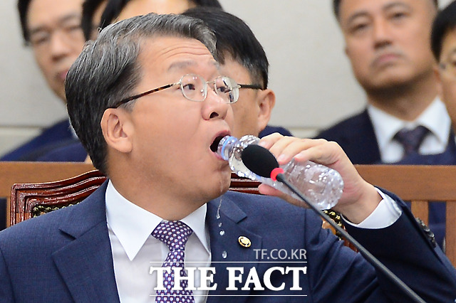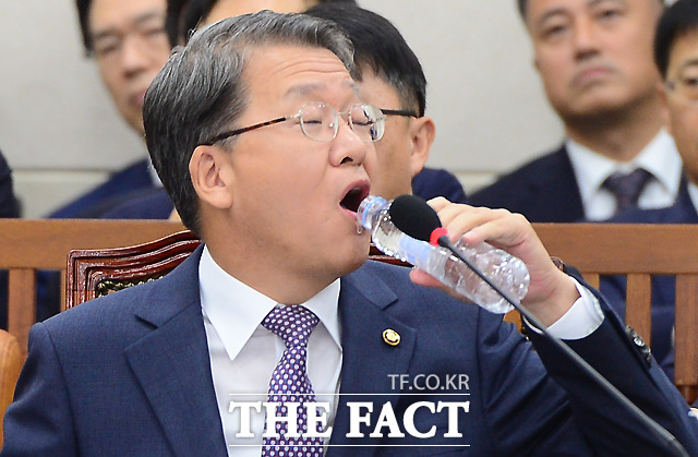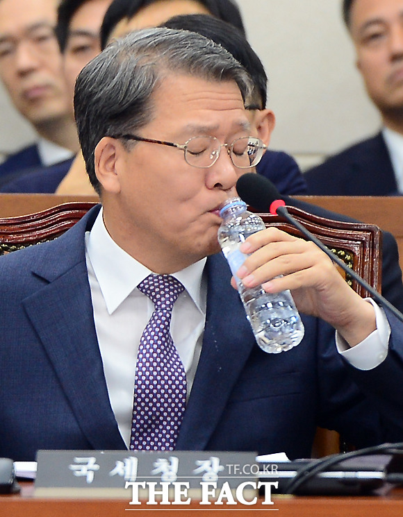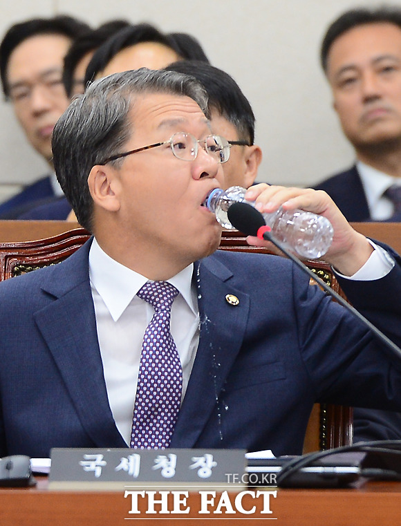 [더팩트ㅣ국회=이새롬 기자] 임환수 국세청장이 7일 오전 서울 여의도 국회에서 열린 기획재정위원회의 국세청에 대한 국정감사에서 의원들의 질의 도중 물을 마시고 있다.