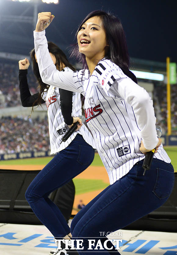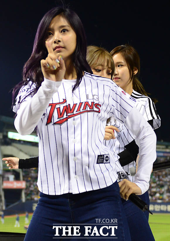 | 걸그룹 트와이스의 쯔위가 야구팬들 앞에서 자신의 매력을 발산하고 있다. [더팩트 | 최용민 기자]25일 오후 서울 잠실야구장에서 열린 2016 KBO리그 포스트시즌 플레이오프 4차전 NC다이노스와 LG트윈스의 경기에서 걸그룹 트와이스의 쯔위가 야구팬들 앞에서 자신의 매력을 발산하고 있다.  | 걸그룹 트와이스가 클리팅 타임을 이용해 멋진 공연을 펼치고 있다.