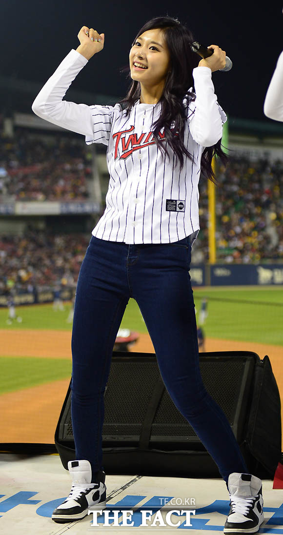 | 걸그룹 트와이스의 쯔위가 야구팬들 앞에서 자신의 매력을 발산하고 있다.