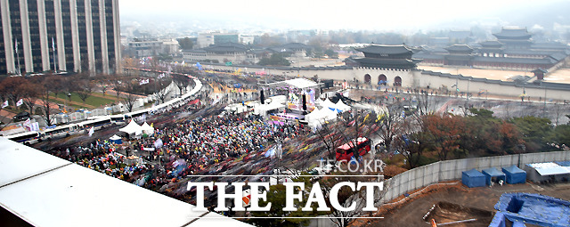 [더팩트ㅣ이새롬 기자] 박근혜 대통령의 퇴진을 요구하는 '5차 촛불집회'가 26일 오후 서울 종로구 광화문광장 일대에서 열린 가운데, 집회 참가자들이 청와대를 향해 행진하고 있다.