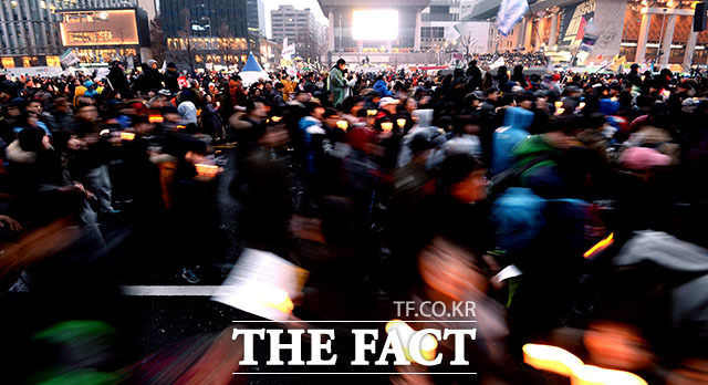 [더팩트ㅣ임세준 인턴기자] 박근혜 대통령 퇴진을 촉구하는 '5차 촛불집회'가 26일 오후 서울 종로구 광화문광장 일대에서 열린 가운데 많은 시민들이 촛불을 들고 행사에 참석하고 있다.