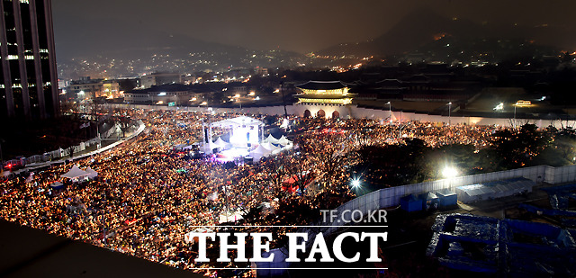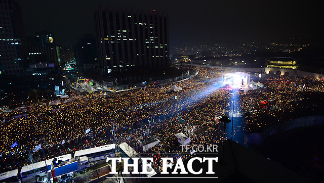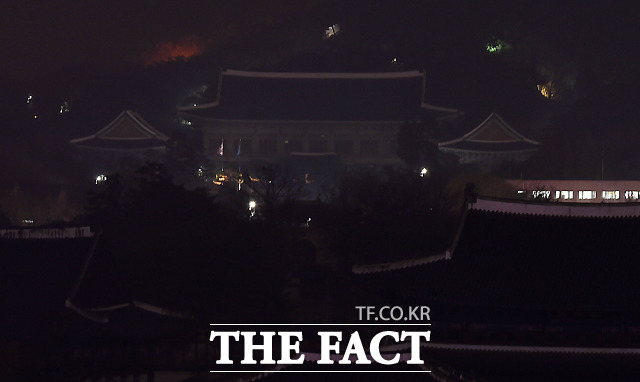 [더팩트ㅣ이새롬 기자] 박근혜 대통령의 퇴진을 요구하는 '5차 촛불집회'가 26일 오후 서울 종로구 광화문광장 일대에서 수많은 집회 참가자들이 대통령의 퇴진을 외치며 촛불을 밝히는 가운데, 청와대는 조명이 꺼진 채 적막에 싸여 있다.