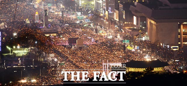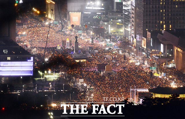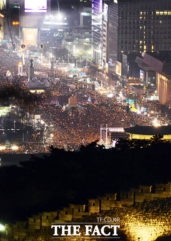 [더팩트ㅣ이효균 기자] 박근혜 대통령 퇴진을 촉구하는 제6차 촛불집회가 3일 서울 광화문 일대에서 열린 가운데 촛불을 든 시민들이 세종대로를 가득 메우고 있다.