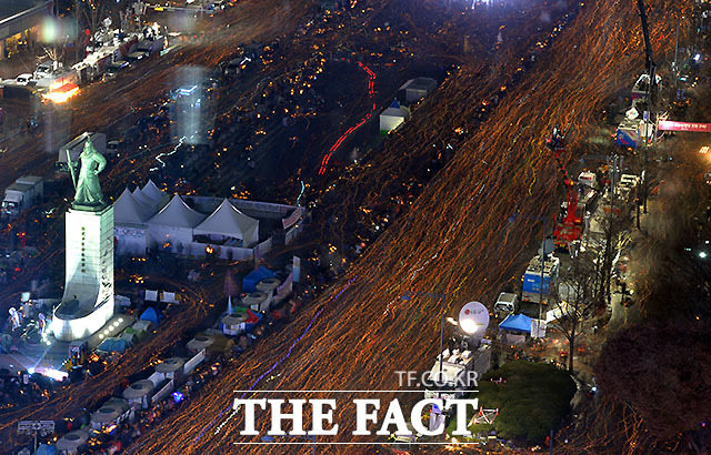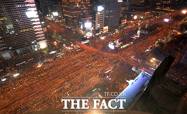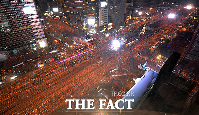 [더팩트ㅣ문병희 기자] 박근혜 대통령 퇴진을 촉구하는 제6차 촛불집회가 3일 서울 광화문 일대에서 열린 가운데 촛불을 든 시민들이 청와대 방향으로 행진하고 있다.