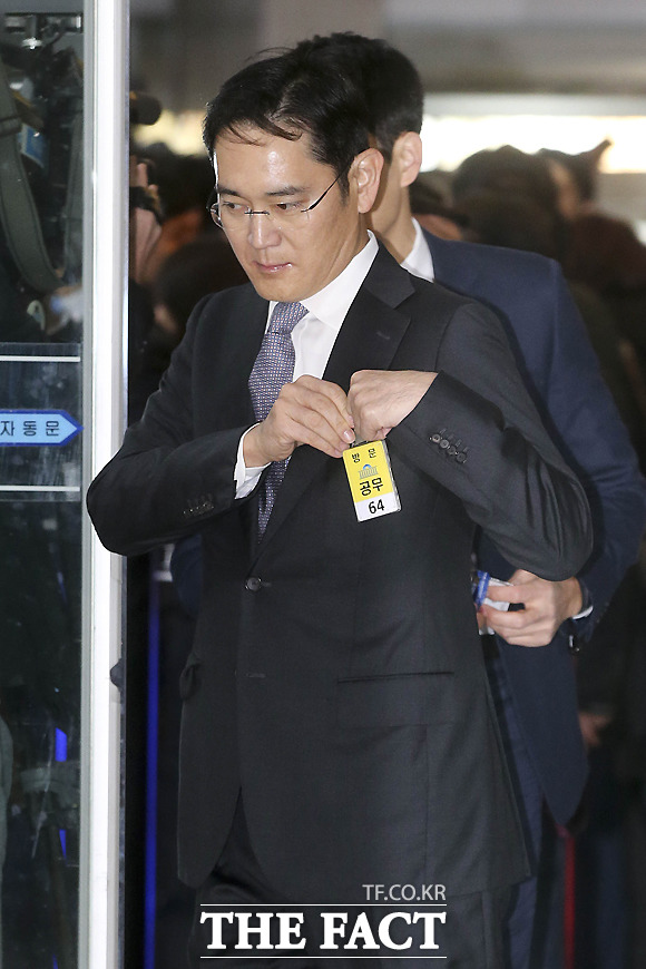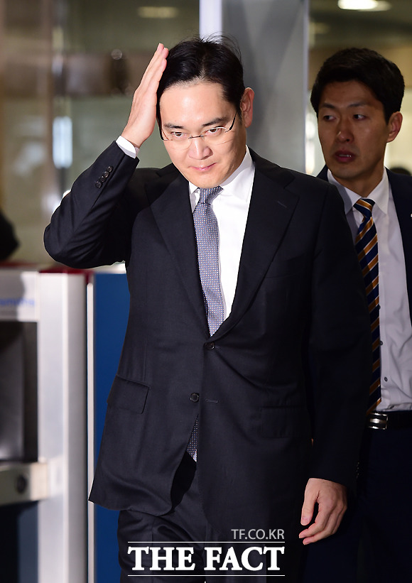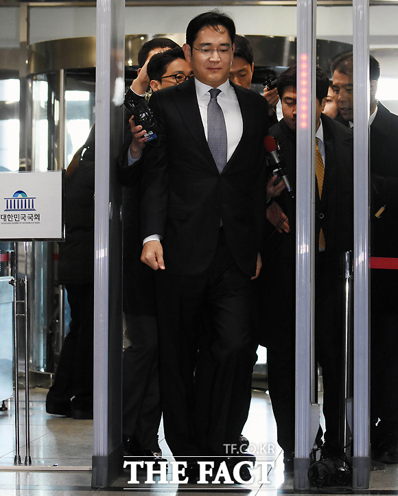[더팩트ㅣ국회=사진공동취재단] 이재용 삼성전자 부회장이 6일 오전 서울 여의도 국회에서 예정된 '박근혜 정부의 최순실 등 민간인에 의한 국정농단 의혹 사건 진상 규명을 위한 국정조사 특별위원회' 청문회 출석을 위해 국회 본청으로 들어서며 헝클어진 머리를 매만지고 있다.