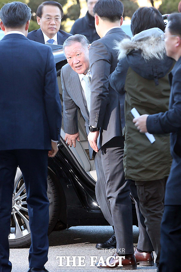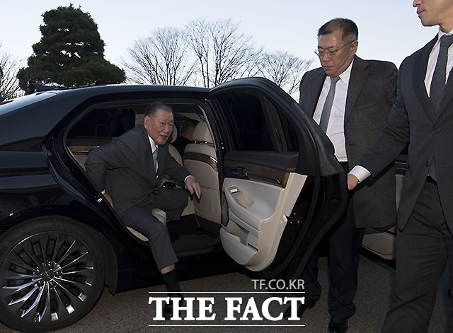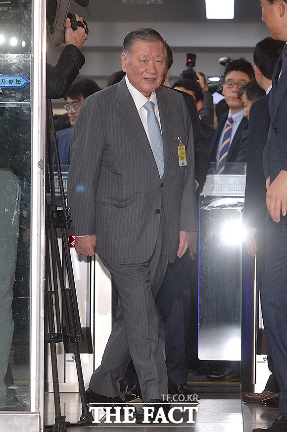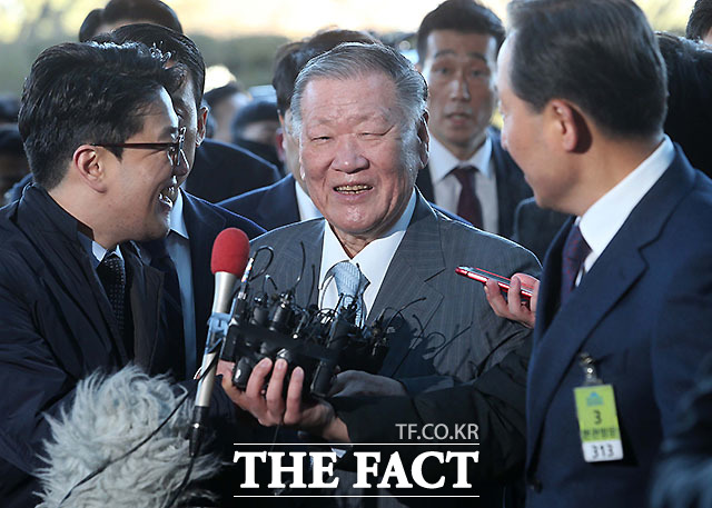 [더팩트ㅣ국회=사진공동취재단] 정몽구 현대자동차그룹 회장이 6일 서울 여의도 국회에서 열리는 ‘박근혜 정부의 최순실 등 민간인에 의한 국정농단 의혹 사건 진상 규명을 위한 국정조사 특별위원회’에 출석하며 취재진의 질문을 받고 있다.
