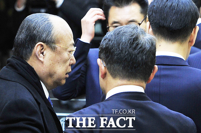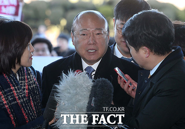 [더팩트ㅣ국회=사진공동취재단] 김승연 한화그룹 회장이 6일 서울 여의도 국회에서 열리는 ‘박근혜 정부의 최순실 등 민간인에 의한 국정농단 의혹 사건 진상 규명을 위한 국정조사 특별위원회’에 출석하기 국회로 들어서고 있다.