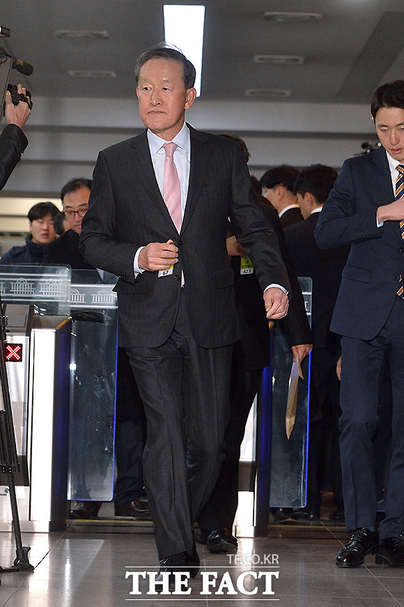 [더팩트ㅣ국회=사진공동취재단] 허창수 GS그룹 회장이 6일 오전 국회에서 열린 '박근혜 정부의 최순실 등 민간인에 의한 국정농단 의혹 사건 진상 규명을 위한 국정조사 특별위원회'에 출석하기 위해 국회에 들어서고 있다.