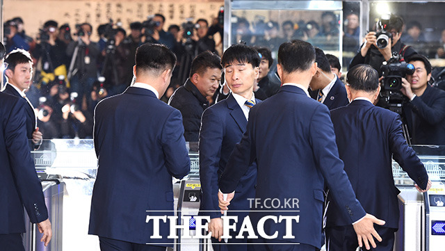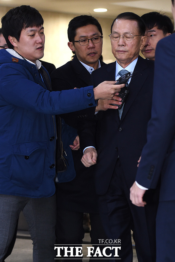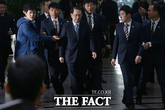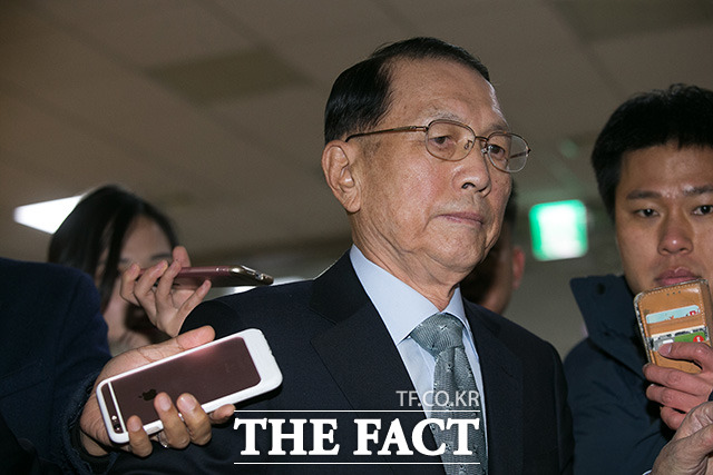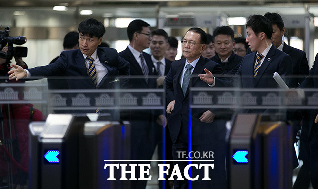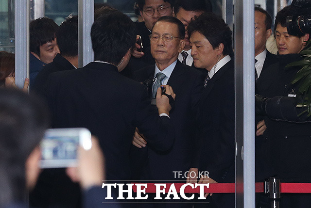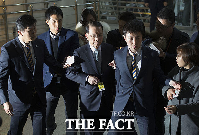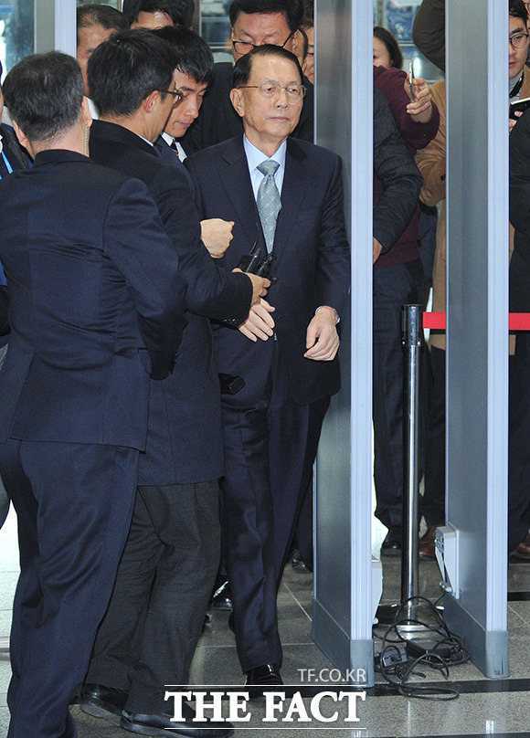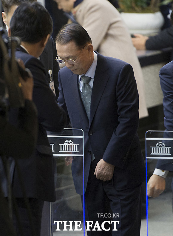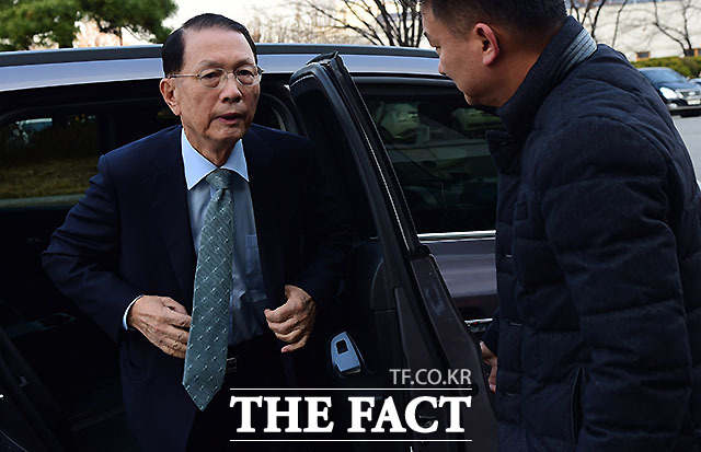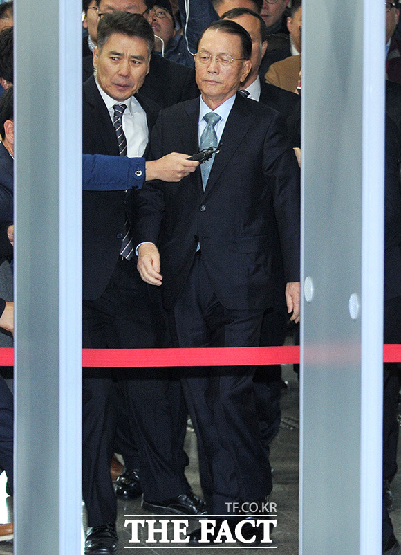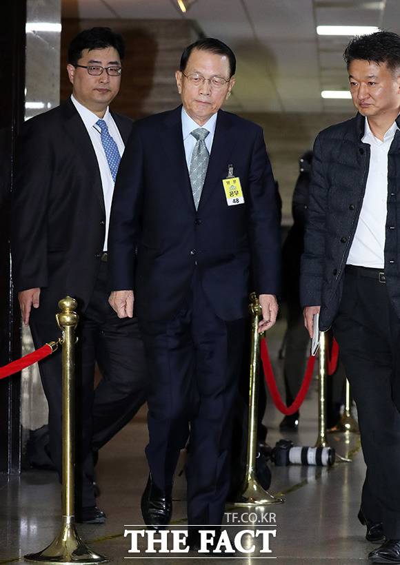 [더팩트ㅣ국회=사진공동취재단] 김기춘 전 청와대 비서실장이 7일 서울 여의도 국회에서 열린 '최순실 게이트' 진상 규명을 위한 국회 국정조사 특별위원회 2차 청문회에 출석하기 위해 출입문을 들어서고 있다.